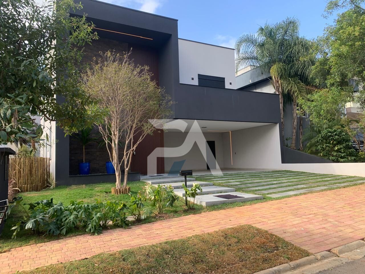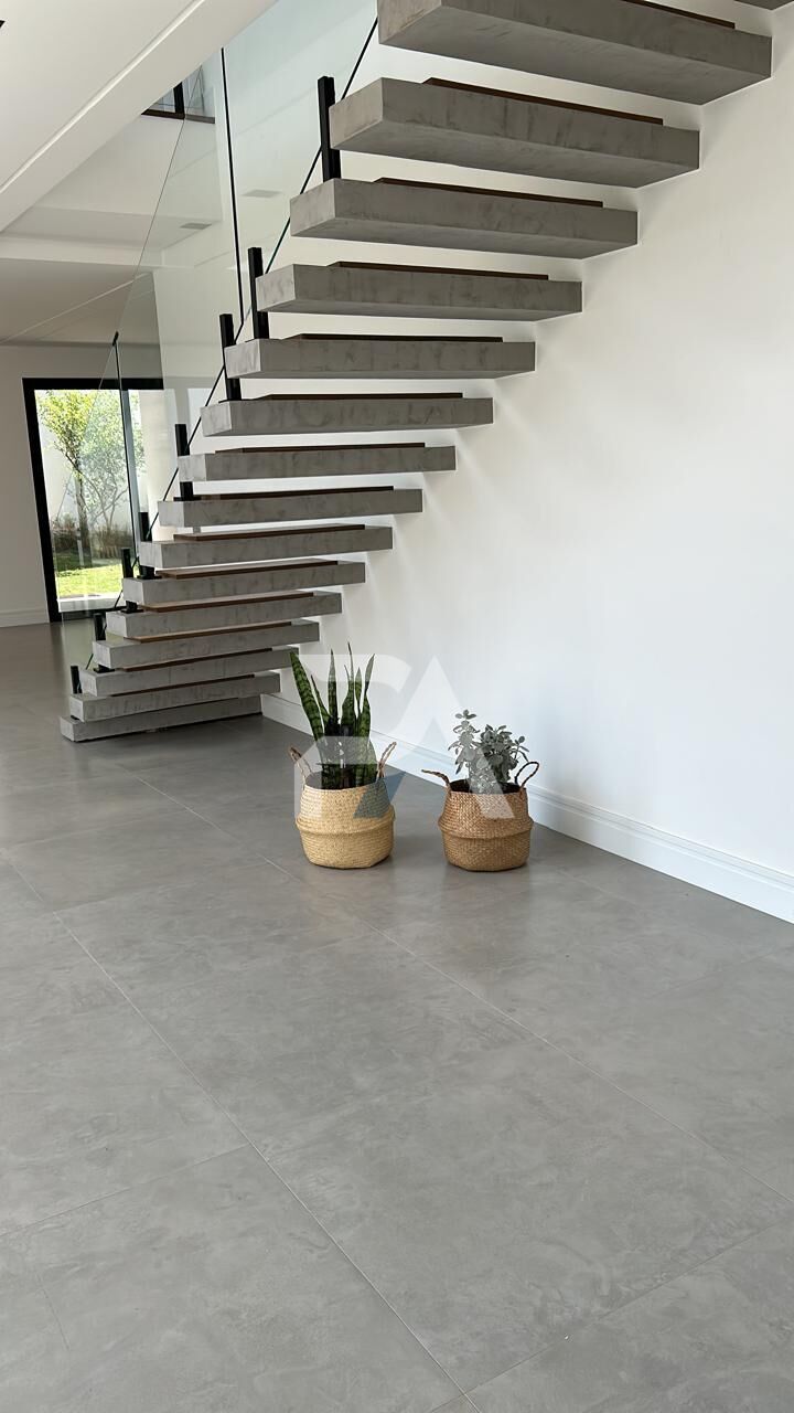 Linda casa no terreno de 465 m2 ,com acabamentos em granito usado na cozinha e espaço gourmet é o Sao Gabriel Escovado. Granito das bancadas dos banheiros é o Branco Prime. Granito dos degraus da entrada principal é o Cinza Andorinha Flameado com balizadores de Led.